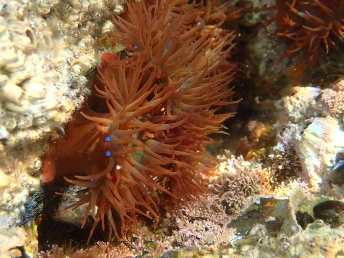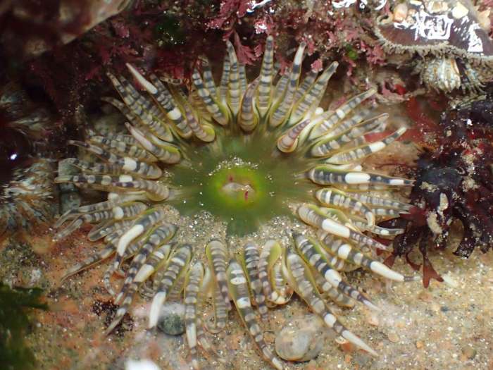 - Les anémones ont des tentacules lisses dont le nombre est généralement un multiple de six. Ils entourent leur unique orifice, il sert de bouche et d’anus.