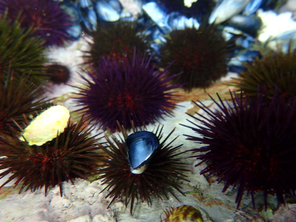 - Contrairement aux autres échinodermes, les échinides n’ont pas de bras. Leur corps est rond, ils ont des piquants, des podia sur quasiment tout le corps (sorte de pied) et des pédicellaires entre les piquants (petites pinces à 3 mors au bout de longs pédoncules).