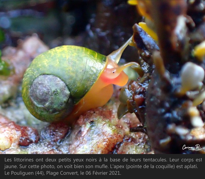Littorine obtuse Publié 7 février 20213 novembre 2021 Par Corine Picard dans Gastéropodes à coquille unique Littorina obtusata -ANIMAUX--MOLLUSQUES--GASTÉROPODES À COQUILLE UNIQUE-Littorine obtuse Partager : Cliquez pour partager sur WhatsApp(ouvre dans une nouvelle fenêtre) WhatsApp Cliquer pour imprimer(ouvre dans une nouvelle fenêtre) Imprimer Cliquer pour envoyer un lien par e-mail à un ami(ouvre dans une nouvelle fenêtre) E-mail J’aime chargement… Publié par Corine Picard Voir tous les articles par Corine Picard