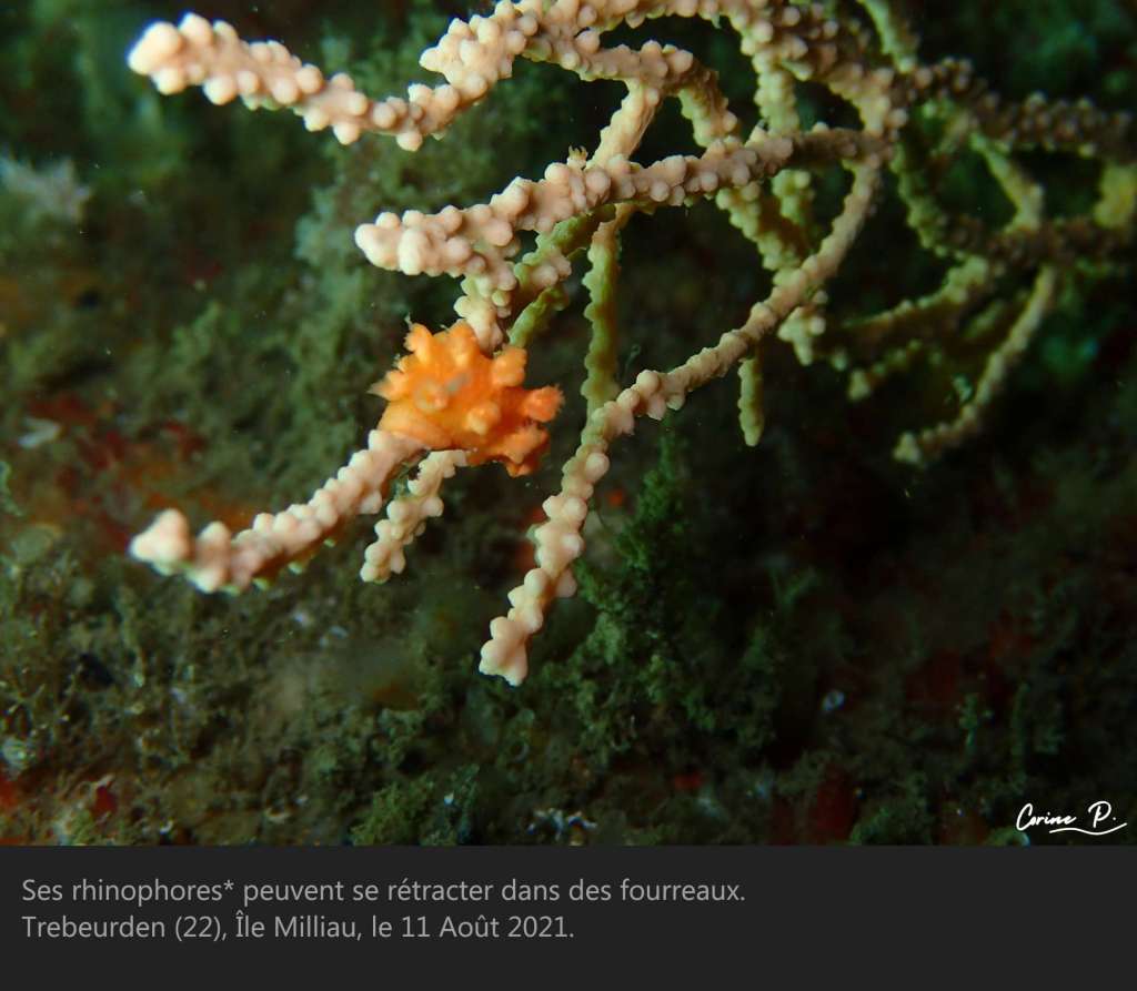 *Rhinophores : ce sont les 2 tentacules qui se trouvent sur la tête des mollusques. C’est avec eux qu’ils sentent les odeurs, la pression de l’eau, les mouvements.