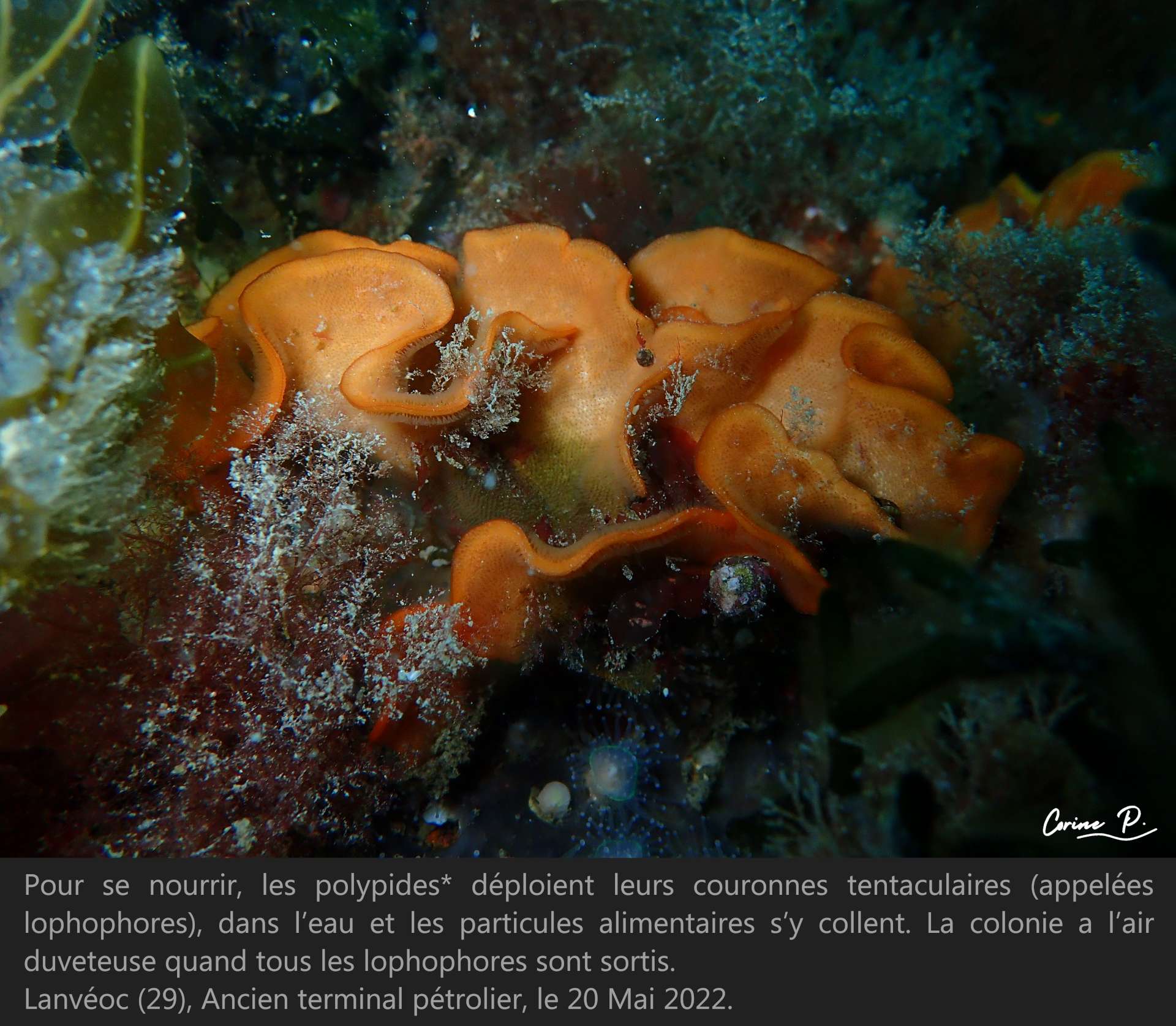 *Les bryozoaires forment des colonies qui regroupent des éléments appelés zoïdes, chaque élément est constitué d’un individu, le polypide, qui est protégé dans une logette, le cystide.