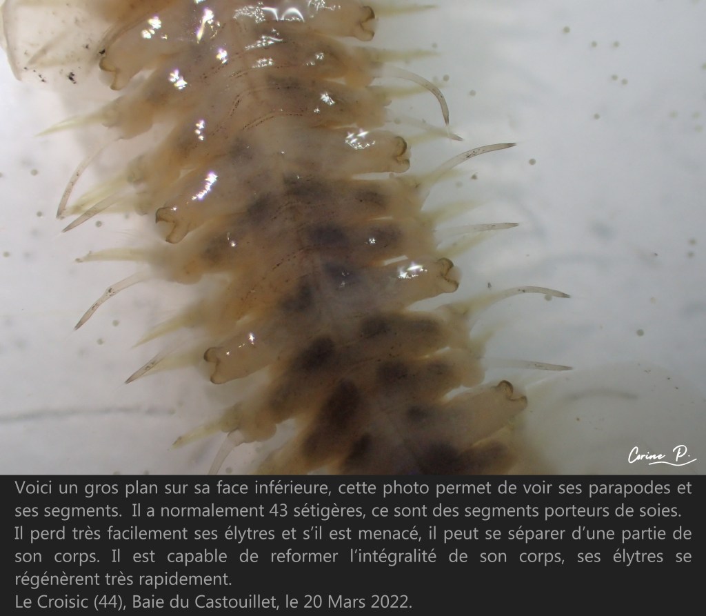*Les parapodes sont les expansions qui se trouvent de chaque côté des segments du ver, ce sont en quelque sorte ses pieds. Leur forme est très importante pour identifier l’espèce.