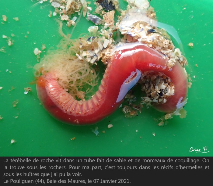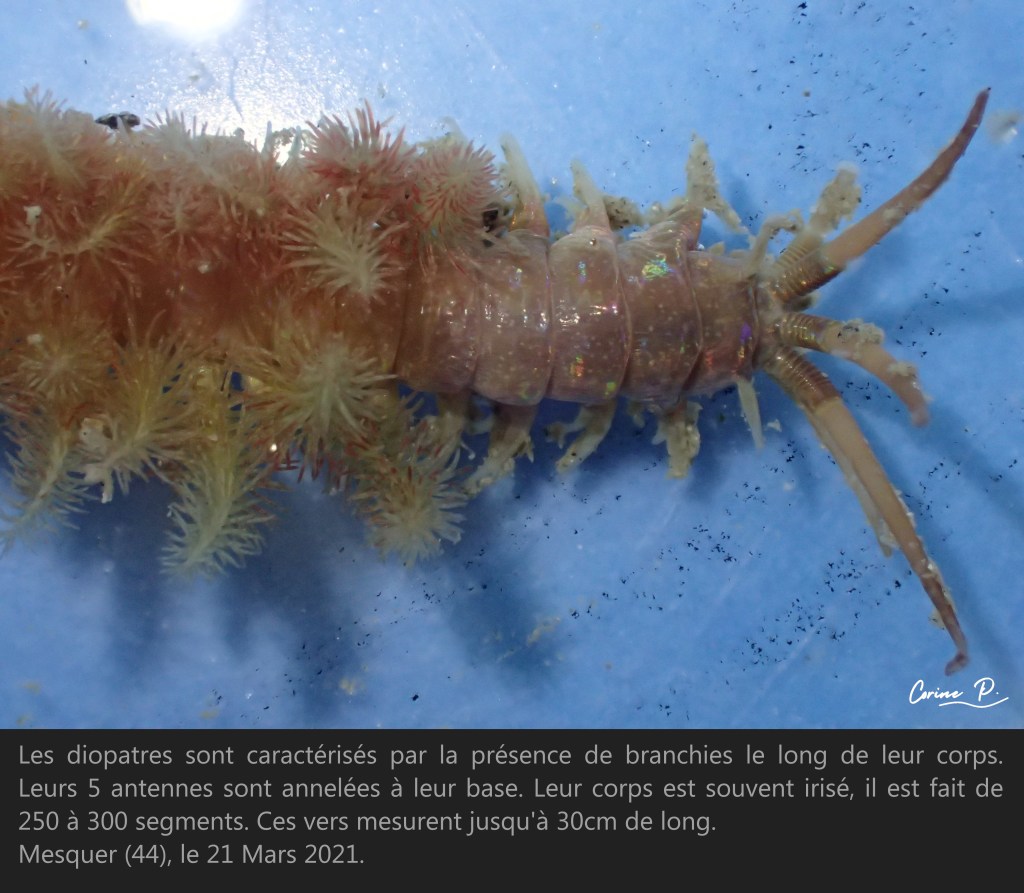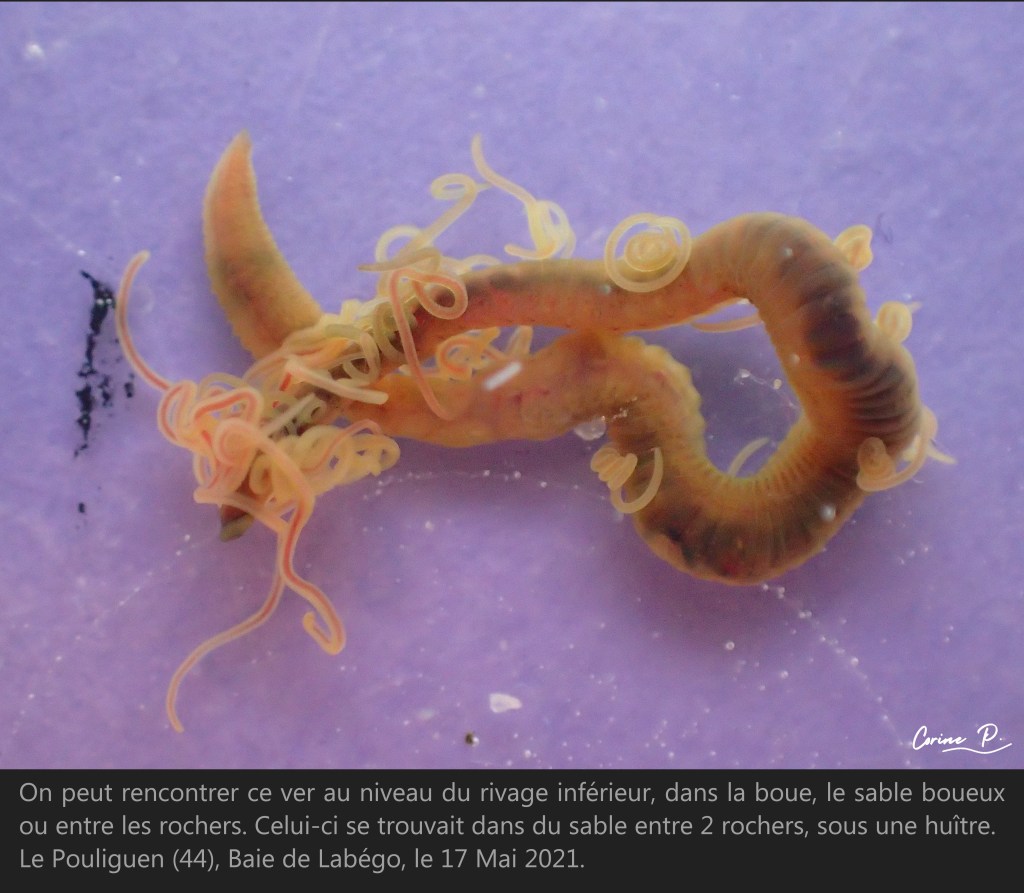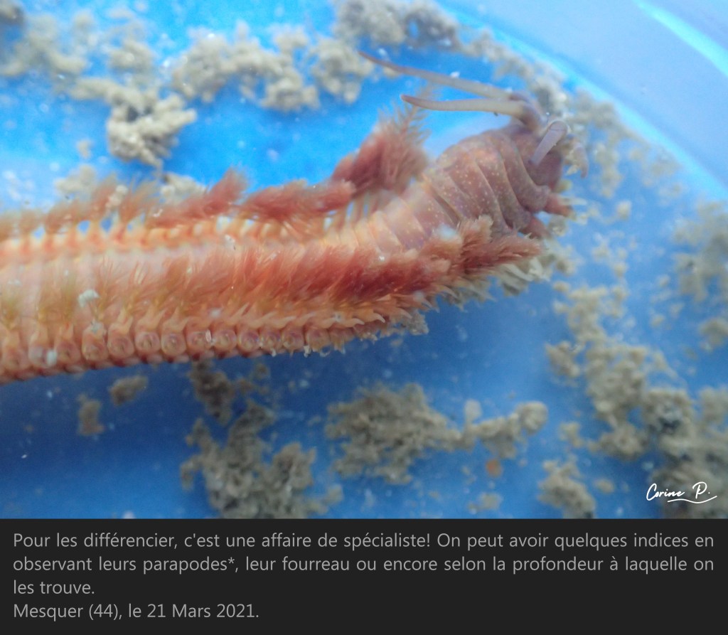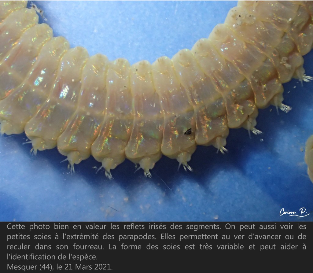 *Les parapodes sont les expansions qui se trouvent de chaque côté des segments du ver, ce sont en quelque sorte ses pieds. Leur forme est très importante pour identifier l’espèce.
