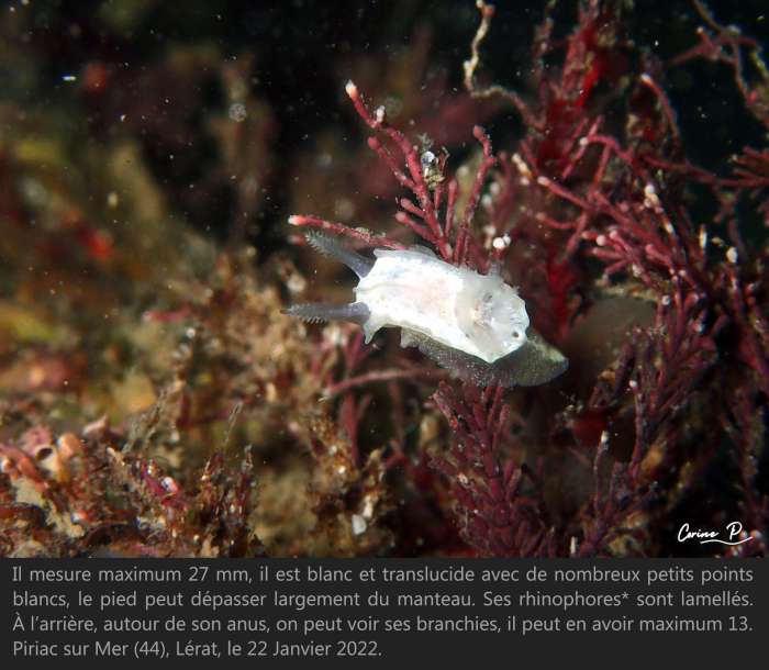*Rhinophores : ce sont les 2 tentacules qui se trouvent sur la tête des mollusques. C’est avec eux qu’ils sentent les odeurs, la pression de l’eau, les mouvements.